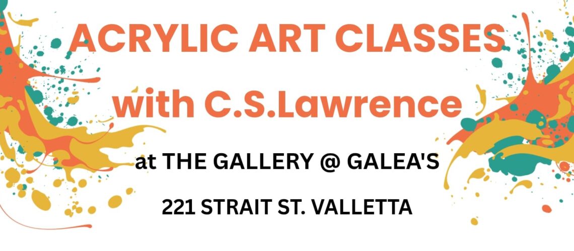 Starting from APRIL 9TH 2026 I will be holding acrylic painting classes once a week on Thursday evenings 17.30-19.30 at THE GALLERY @GALEA’S 221 STRAIT STREET VALLETTA. All levels can attend. My art classes are known to be stimulating, inspiring and most of all, fun!